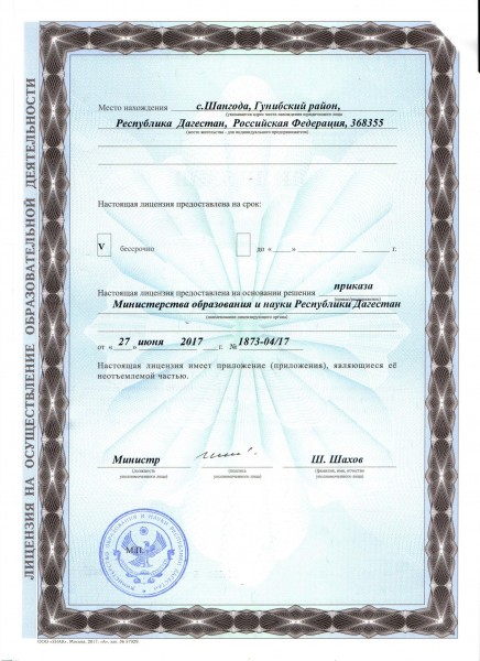 | Адрес местонахождения образовательной организации* | 368080, Республика Дагестан, Кумторкалинский район, п/о Алмало, к. Кумтоп Агрофирмы «Шамгода» |