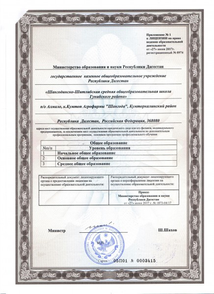 «Шангодинско-Шитлибская средняя общеобразовательная школа Гунибского района». Настоящий документ призван обеспечить